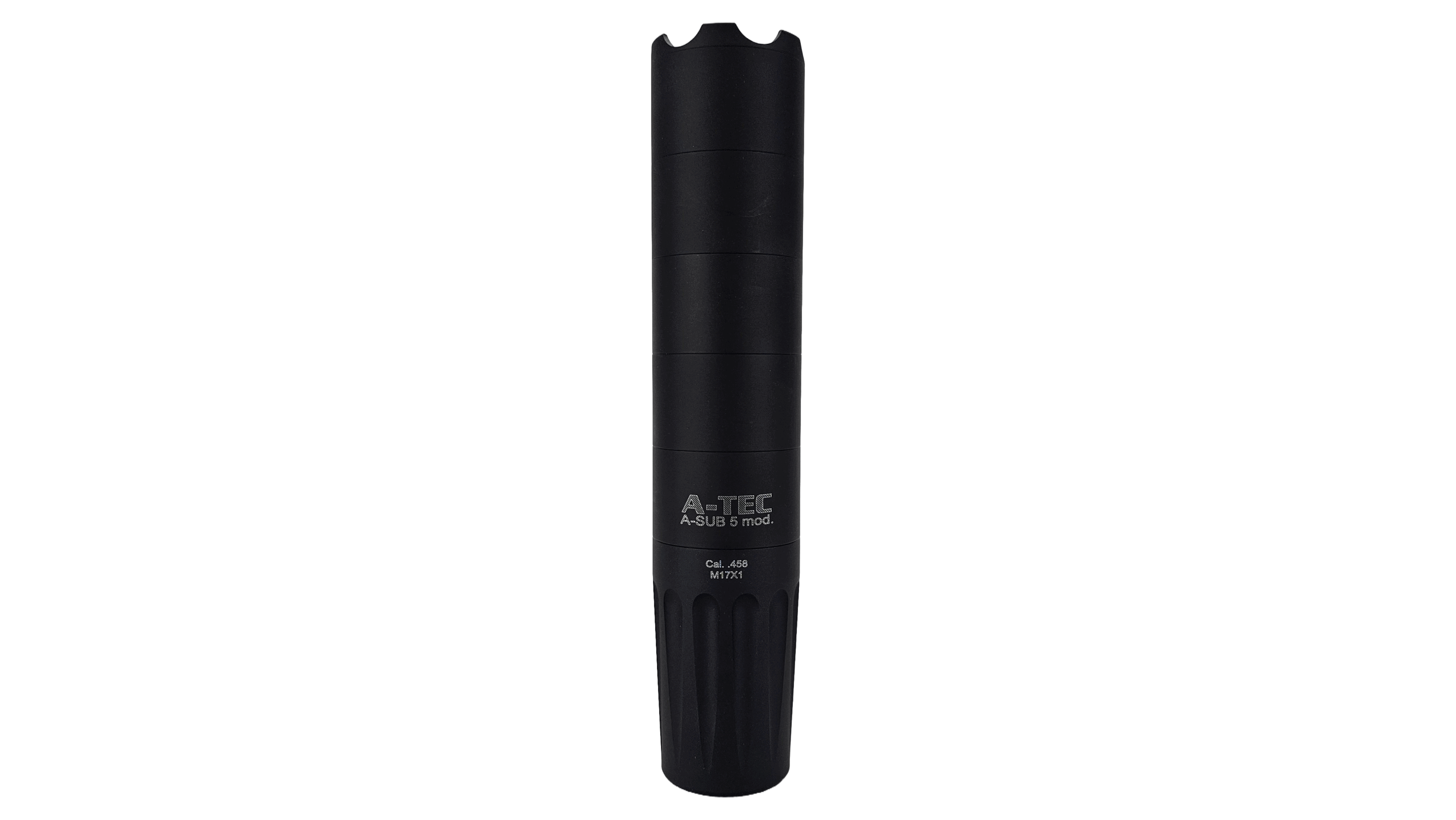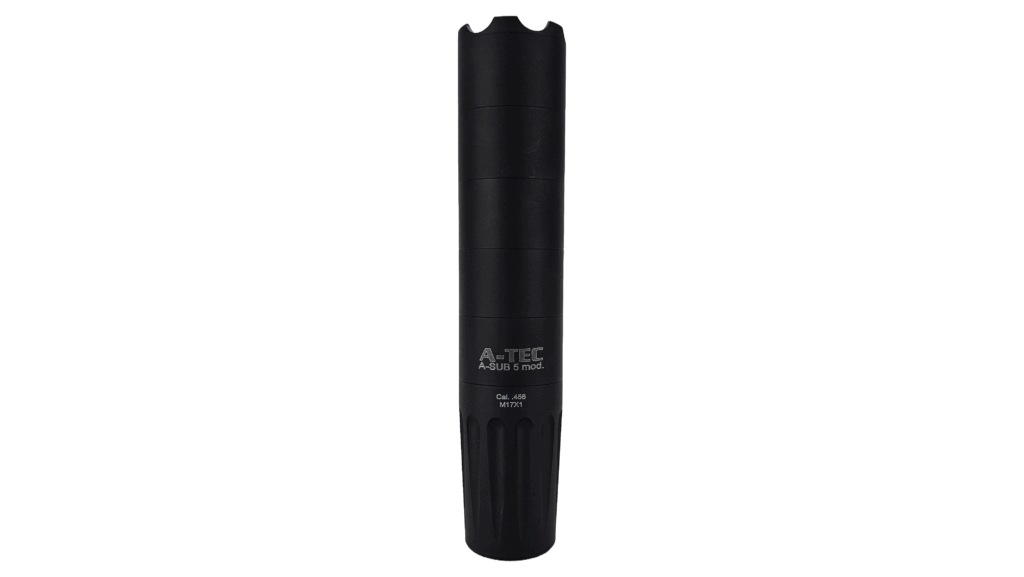 A-SUB 5 jest nie nachodzącym tłumikiem zaprojektowanym specjalnie do amunicji poddźwiękowej. Posiada standardową długość 235mm i waży tylko 380 gram przy średnicy 49mm.